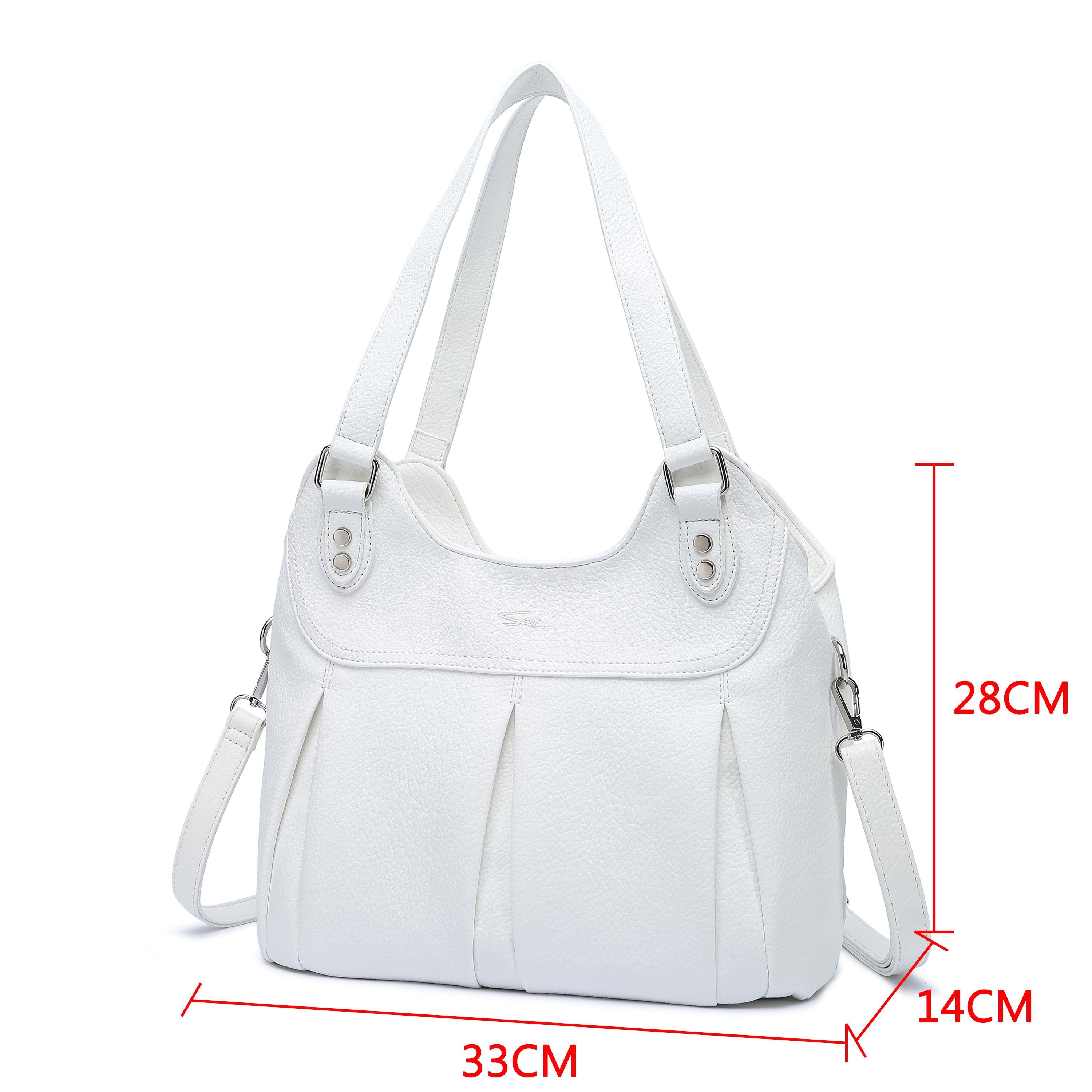 Amplia, cómoda y con el toque perfecto de elegancia. Esta cartera tiene el espacio justo para tu mundo: desde maquillaje y celular hasta tu agenda. Confeccionada con materiales resistentes y detalles de diseño que hacen la diferencia. Con un tipo de estilo clasico, postura hombro de la temporada primavera - verano, tamaño mediana: alto 28, ancho 20, sistema de apertura cierre, no incluye monedero, y sin compartimiento notebook. Regalo funcional y con estilo para cualquier mujer activa.